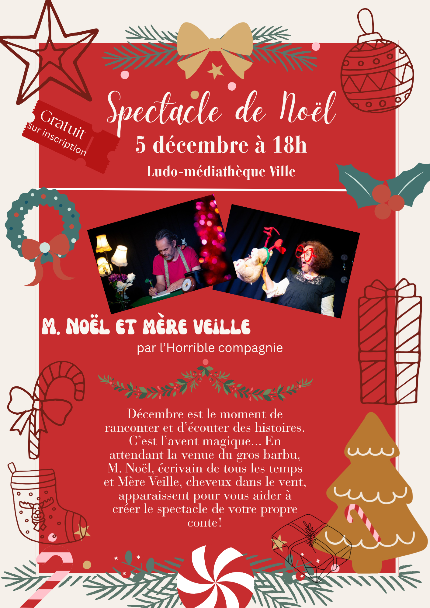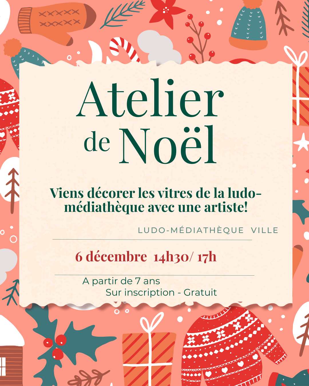 La ludo-médiathèque fête Noël les 5 et 6 décembre 2025! Après les contes, le spectacle de Noël, viens décorer les vitres à l'aide d'une artiste!...